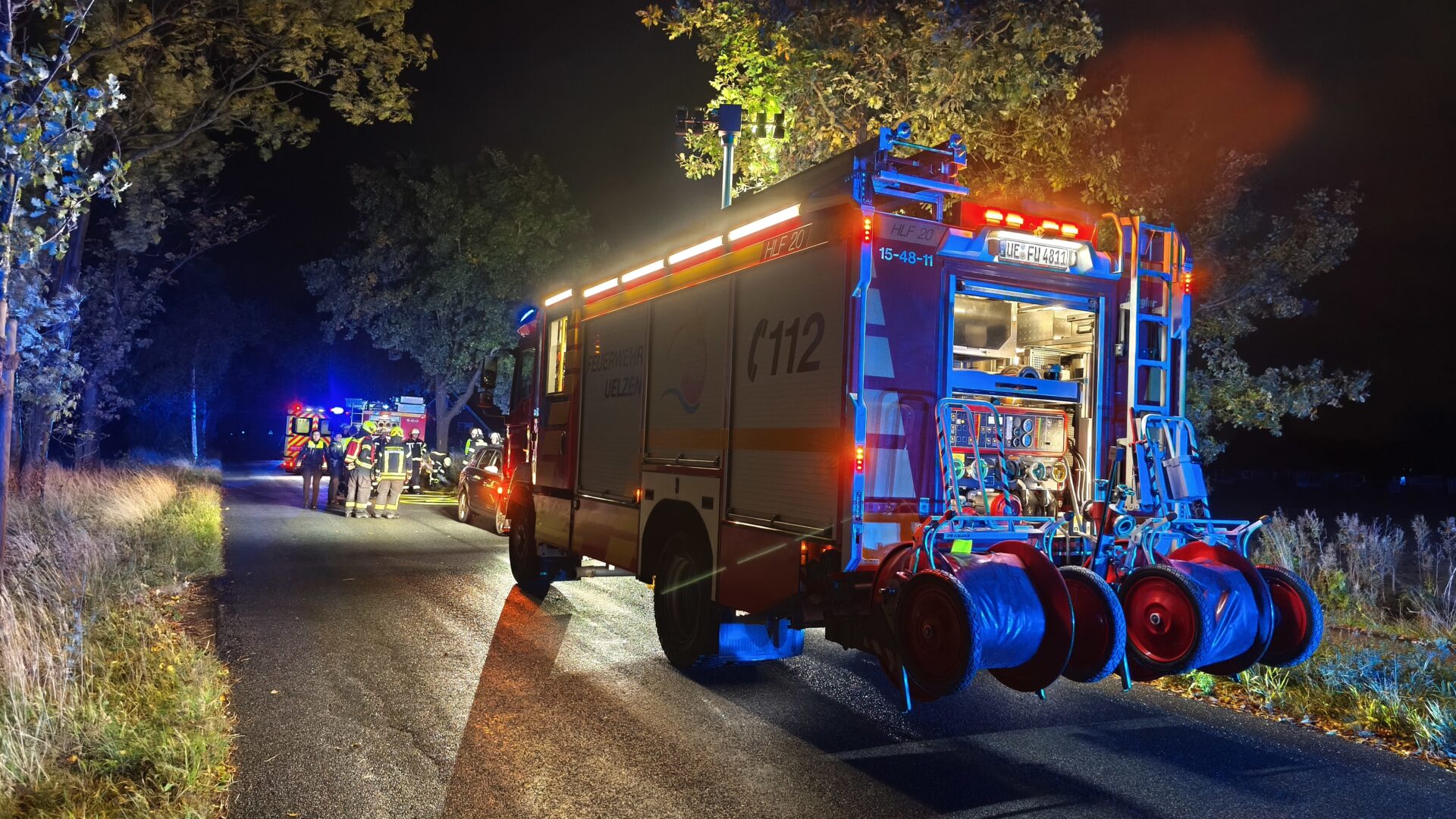 Fahrzeuge/Kräfte: HLF 20 (Florian Uelzen 15-48-11) , KdoW / BvD (Florian Uelzen 15-10-11) , RW (Florian Uelzen 80-52-1) , TLF 16/25 (Florian Uelzen 15-23-11)
